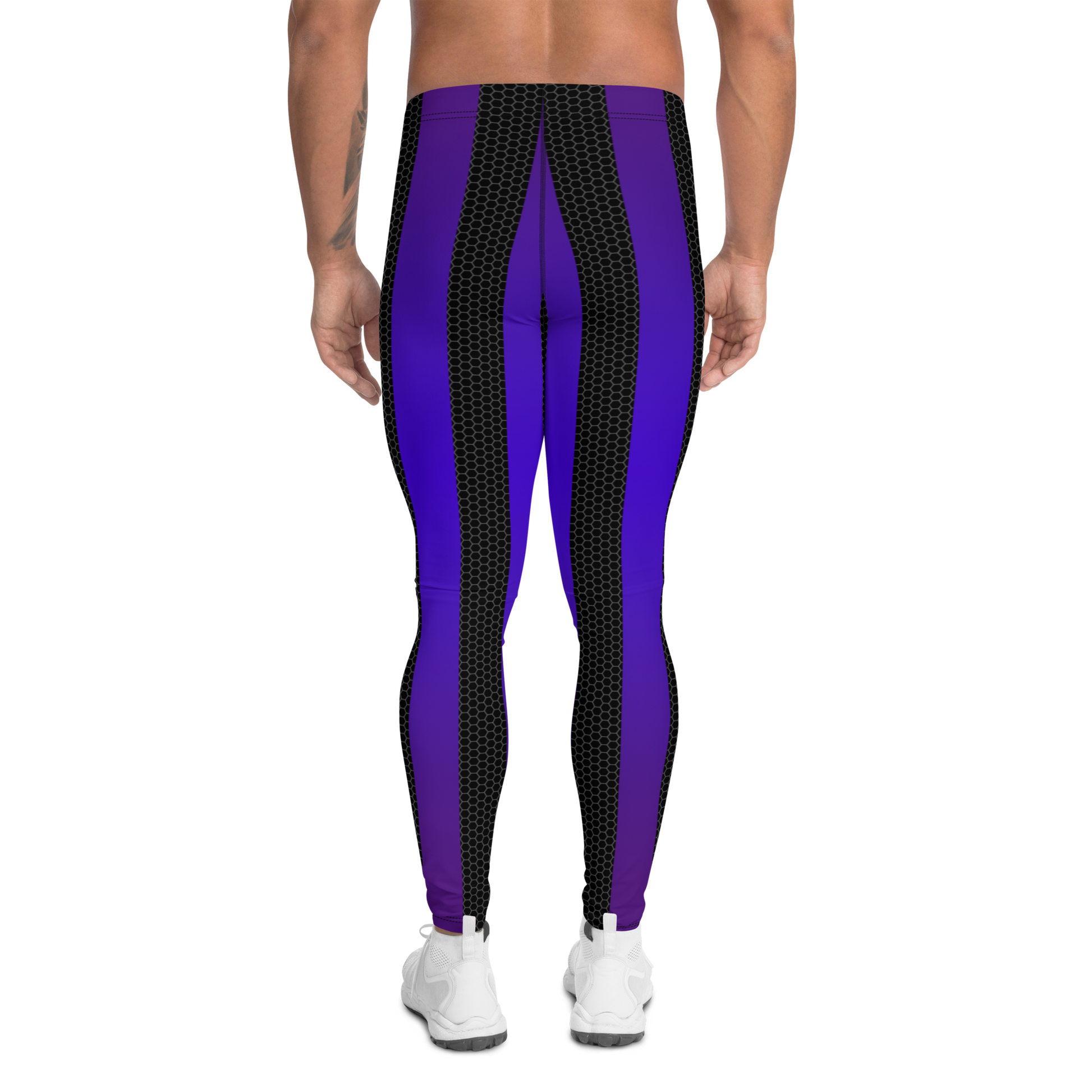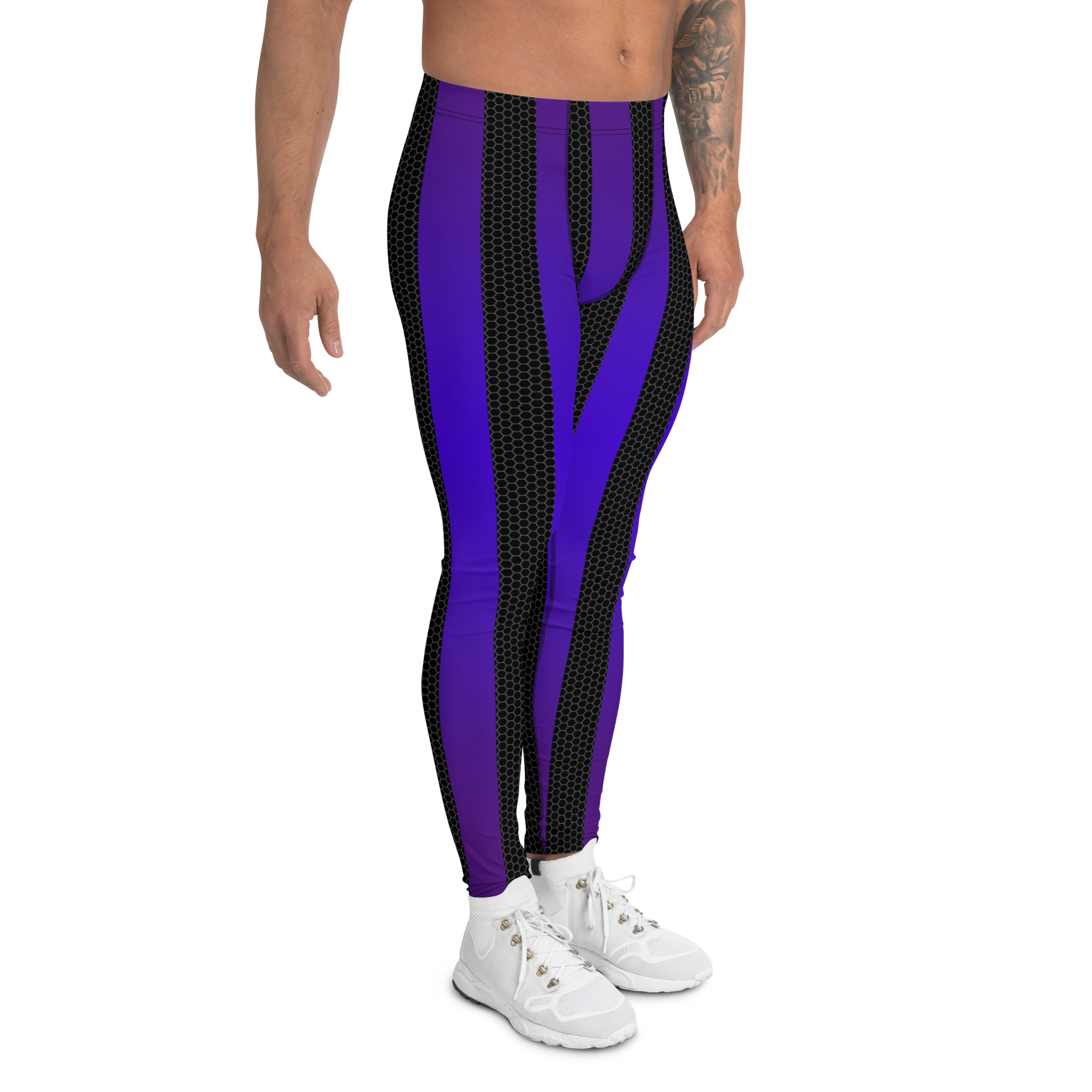 The Grackle Plus-Size, High-Waisted Bodybuilding Tights bring you a whole new level of color to show off them glutes and quads the way it was intended. We have updated our 80's retro print with a stunning new shade of purple that has an iridescent look similar to that of a grackle. This print also features a set of textured black bars that will show off your shape in all the right places. We do offer this print in our classic cut, but we made these high-waisted tights for customers who need sizes up to 3XL and have asked us for more room in the ankle, calf, waist, and they are high-waisted for better styling. These tights are perfect for fitness, travel or lounging, and they're here to keep it queer.